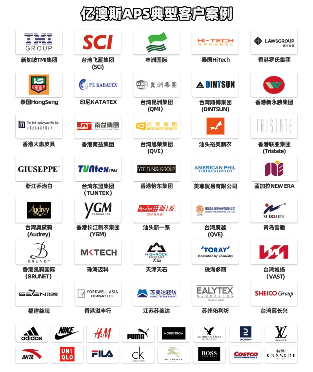 广州亿澳斯软件股份有限公司(Integrated Optimization Software Co.,Ltd)成立于2007年,专注于纺织服装行业的智能排产系统(IOS-APS)研发,拥有世界顶级优化算法专家和16年以上跨国服装企业工作经验的专业顾问,自主掌握智慧排产算法的核心技术,服务客户遍布全球十多个国家,包括Adidas、Nike、H&M、ANTA、优衣库、迪卡侬等知名品牌商的顶级供应商。凭借成熟的产品和专业周到的服务能力,亿澳斯APS项目实施迄今保持100%上线成功率,给用户带来了很好的经济效益,也因此在业界拥有极佳的口碑。