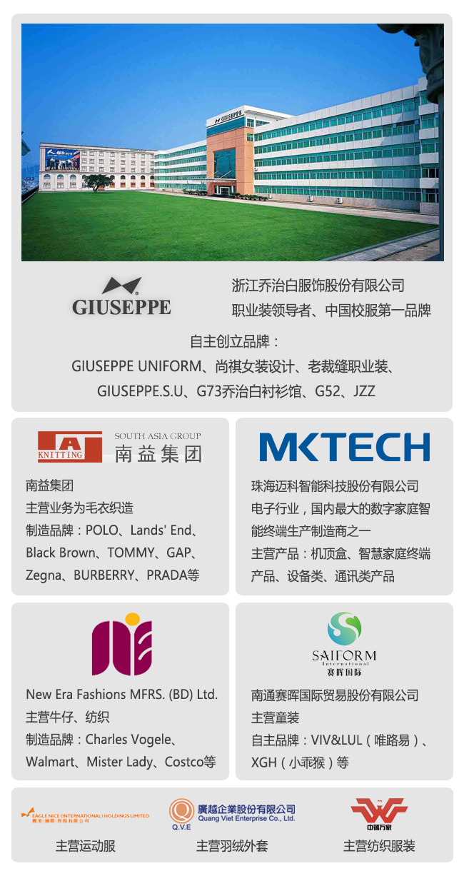 这一年,亿澳斯签下了多家世界一线品牌的制造商和拥有知名自主品牌的生产商,包括职业装领导者、中国校服第一品牌乔治白,承接大量NIKE运动服订单的汕头裕美等。