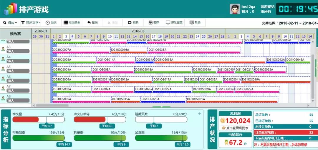 『排产沙盘』是由亿澳斯开发的一款人机交互的可视化电脑排产游戏,操作简单易上手,界面仿照亿澳斯APS智能生产计划指挥系统。