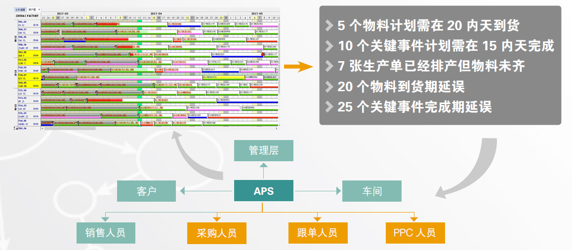 亿澳斯APS同步化考虑了生产计划和采购计划,依据生产执行采购计划,使得物料计划的精度和可靠性比传统的MRP更高,避免了盲目采购,过量及少量采购。同时,亿澳斯APS可根据精确的物料需求时间来决定最佳的采购方式,使物料供应配合生产,真正实现精益采购(JIT),使工厂物料成本最低,库存最小。对于采购提前较短的物料,其采购计划反过来决定相应生产单的最早可开工期,从而影响相应的生产单计划。