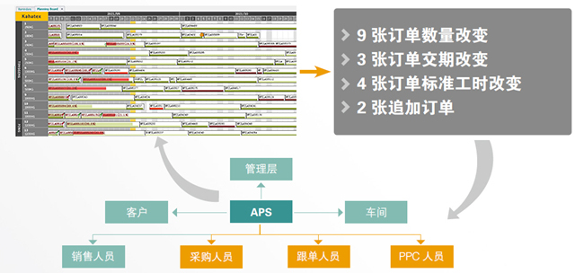 亿澳斯APS 系统会自动根据订单的变更,快速调整相应的生产计划及物料计划,并通过预警方式可视化的实时展现给相关部门,彻底解决因订单变化对生产计划变更、物料管理、交货延误所产生的影响。