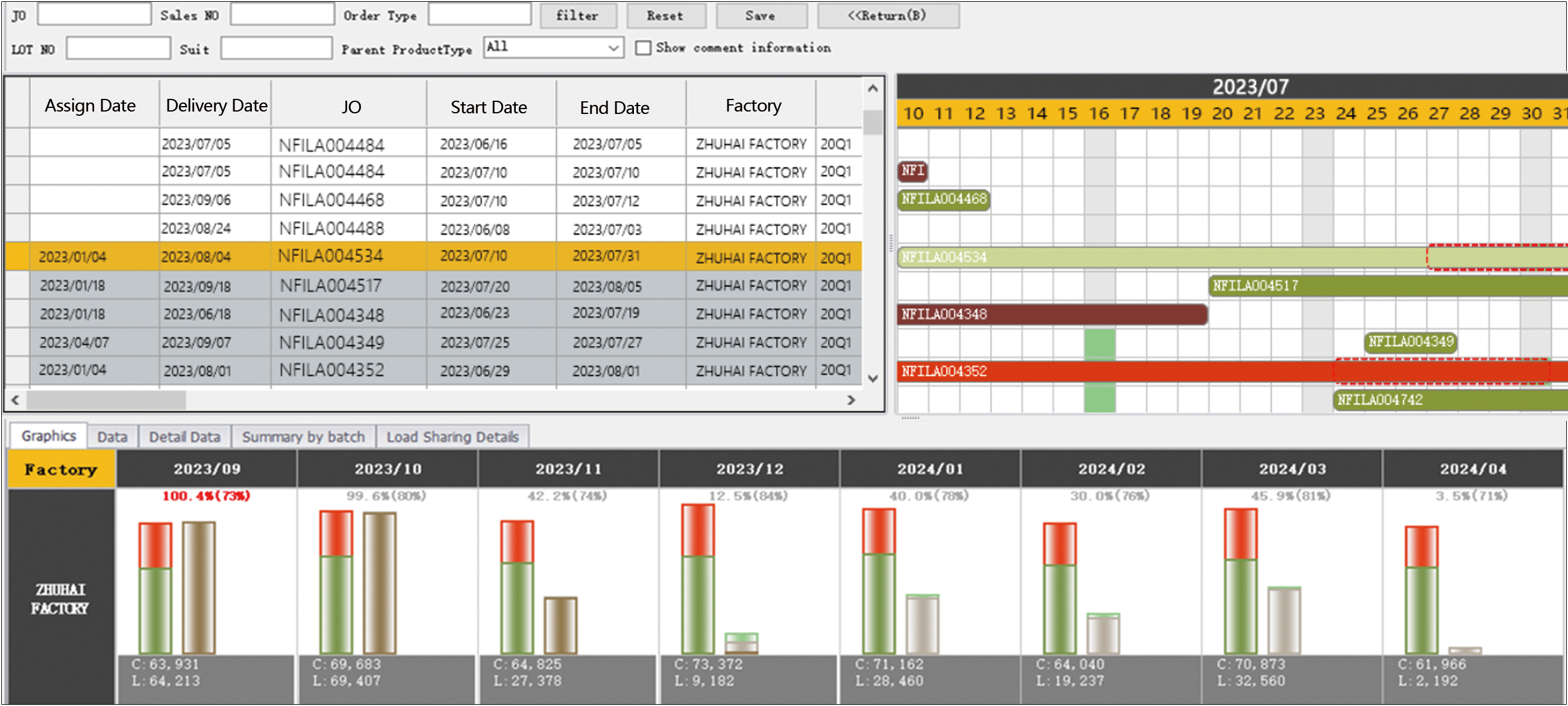 亿澳斯APS系统能快速精确的计算出未来十二个月内的产能负荷情况,为决策者实时提供接单、生产外发、准时交货依据,彻底解决了过去产能负荷无法评估或评估不准确的问题。